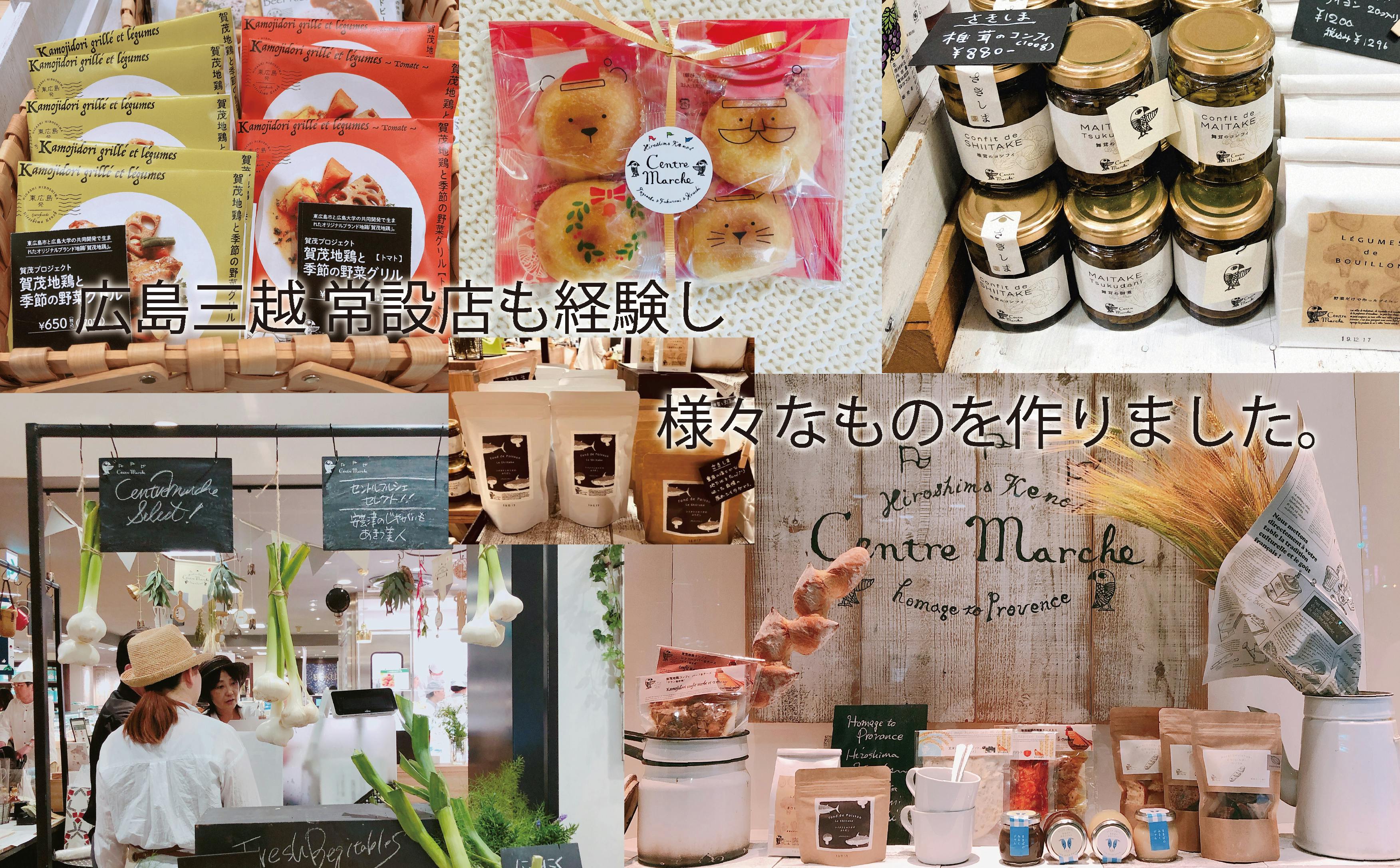 地域の活性化を考える上で特筆すべき産業や文化が見つからない・・・多くの中山間地域がこのような問題を抱えています。この課題に対して私たちが独自の商品、独自の販路で展開するのではなく「お手本はプロバンス」を合言葉にイメージを統一、広島県央地域の事業者が一枚岩となって、一つのブランドとして発信しています。そしてこのブランドを育てることによって大きな力となり地域全体に賑わいをもたらすことができると信じています。そのために地域の産物をより良いものに磨き上げ、各事業者が自信を持って”Centre Marche"ブランドとして提供できる商品開発にも尽力しています。私たちは今後この地域ブランドをモノだけでなく「コト」と「ヒト」にも作用させることによって、この広島県央地域(豊栄町・福富町・河内町)がさらに豊かな地域育つことを目指します。