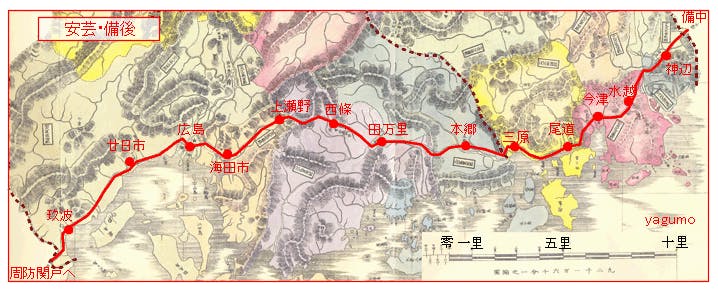 溜め池が発達してから、豊栄町を有する賀茂大地は江戸時代中期から中国地方有数の穀倉地帯となりました。三津村(安芸津町)の御蔵所から大阪の広島藩へ年貢米は船で運ばれました。その時代、上方は華やかな庶民文化が花開き、豪商は普段から絹織物を、使用人は綿を着ていました。農家は米作の合間に養蚕や綿花を育てていました。繭や綿は米とともに船で京都へ運ばれ、西陣織や京友禅の材料に、綿は近江上布(高級綿織物)となったのです。また日本海、海運で活躍した北前船で、綿が育たない東北や蝦夷(北海道)にも運ばれました。その時代、農民は真冬でも麻を重ねて寒さをしのいでいたため、なかなか手に入らない貴重な綿を庶民は継ぎながら大切に使いました。この時代の布は「BORO」と呼ばれ、厳しい生活と物を大切にする暮らしをアートの視点で各地で展覧会が開催されています。