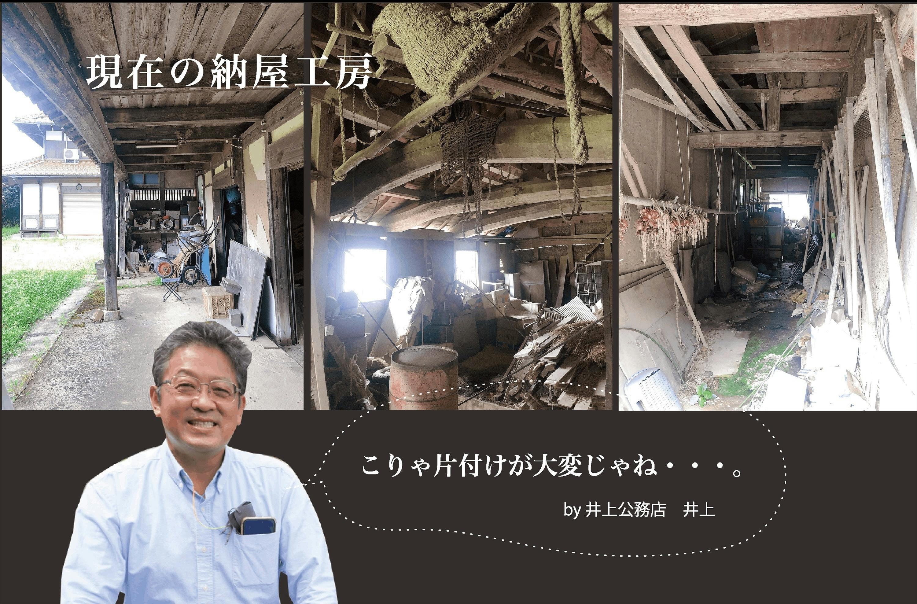 国道375号沿いのこの大きな古民家は築120年。豪農だったことが偲ばれる、大きな梁、丁寧な飾り欄間。20畳もの広い土間の台所。10畳、12畳の続き間。大家族の暮らしを彷彿させます。玄関脇には天井扉。この上で昔は蚕を飼っていました。あちこちから糸巻き、大工道具、婚礼用の三々九度のセットなど数々の道具が出てきました。古民家の荷出しはその時代の産業や文化に直接触れることができるのです。この古民家を町のシンボルにするために納屋を工房に。人が集まれば新たな取り組みが生まれる。その循環を生み出す。そのためにまず復活させなければならない。