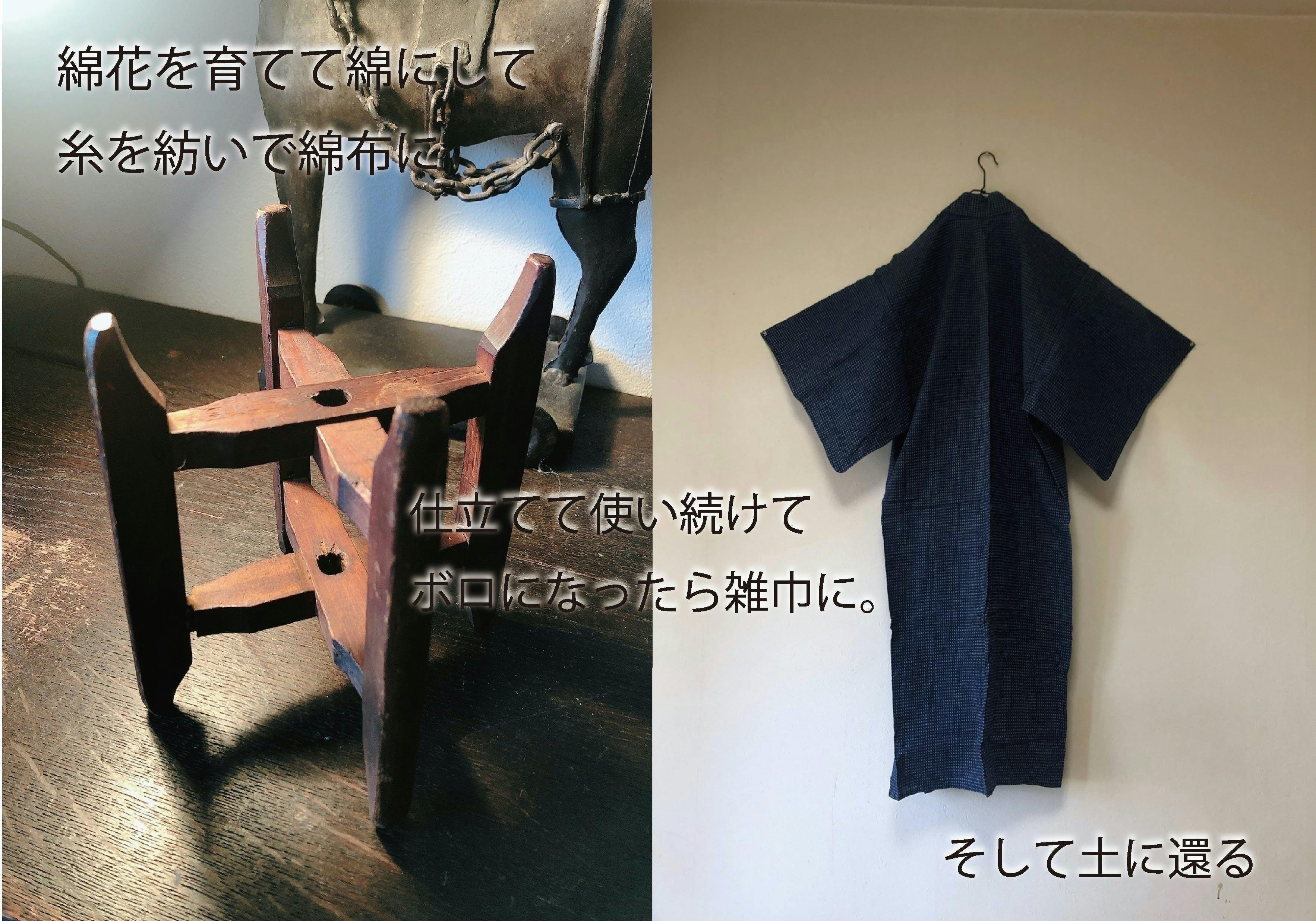 庶民が日常着として栽培し糸を紡いで着物にした綿。ほころびたら布団に。そして布巾、さらに雑巾に。そうして使えなくなったら土に還す。また綿を育てる・・・。自分の手で育て土に還す。日本人の素晴らしさは何百年もの間「SDGs」を継承してきたことではないでしょうか。自分の手で「綿」を育て、つむぎ、織る。そしてこの場所で使い続けたいと思います。