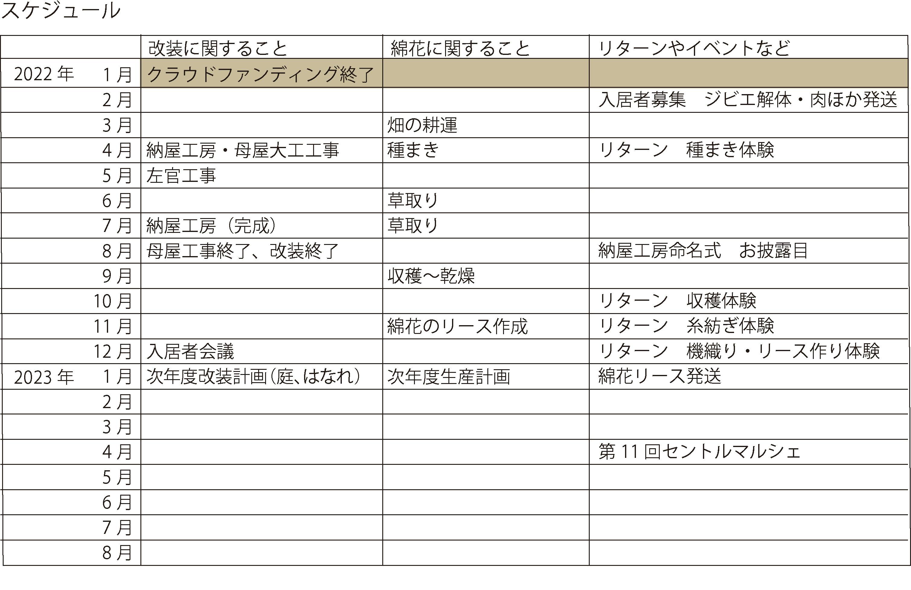 • それでも準備だけは・・・タカオキ邸のワークショップのスペース作りは進めました。2021年メンバーで改装した納屋は綺麗になり、あとはサッシの取り付けや建具の整備。2階は3つの小部屋をつなげて広いスペースを確保。。改装前の出来事。片付けるために道具を何でもかんでも下に落としている最中、「ガッチャン!!」という音。中から明治〜大正の漆器や陶器が。落とした際にぐちゃぐちゃに壊れて散乱しています。「あ〜っ!!」もう遅い・・・。とはいえ丁寧な細工に味わいのある器たち。壊れたお重2くみを1組に合わせて修理することにしました。角が割れたり、柄が剥げたり。修理してまで使いようなものではないのかもしれませんが、100年近く納屋の2階で見つけてもらうことを待っていた道具たち。再び人が集う場で使って欲しいと伝えてくれているようでした。福富町の工芸椿さんに見てもらい仕上がりまで約3ヶ月。細かくチェックしながら一番良い方法を模索しておられます。近所の古民家から縄をなう機械をいただきました。タカオキの納屋に眠っていた道具たちを引っ張り出してはディスプレイに。この日はBBQのお客様がお見えになる予定です。出来ないことは多々あるけれど、この古民家を知っていただくことも大切な取り組み。ここで何かしたいという方と出会うチャンスだと考えてタカオキ邸のほか地域の空き家をご案内させていただきました。糸巻き使える状態のものはなかなか見つかりません。安芸高田市の骨董屋さんで偶然見つけた糸巻き。そのほかの道具はまだまだ探せません。できるだけ近隣で探したいと思います。とうとう霜が降りてしまった・・・11月・・・だんだんと寒くなってきましたがなかなか綿が開きません。下の方には少し開いたものもありますが私が知るものではないのです。もう少し待ってみよう・・・そう思って日々過ごした朝。霜が降りて綿は茶色に・・・。無残な状態・・・。素人が無謀だったかもしれません。少しだけ綺麗な部分を摘み取って開いてみることにしました。とても小さいけれど、綿です。やはり種まきが遅かったこと。霜の心配がなくなったらすぐにタネを蒔き、夏の水枯れに注意。霜が降りる前に収穫。経験が成功につながるそう信じています。諦めませんコロナ渦や暑さ寒さに翻弄されましたが、今年は再挑戦します。この「経験」を「失敗」と呼ばずにチャレンジします。目的はこの場所をものづくりの拠点にすること。ワークショップの場所として完成させてたくさんの方が集える場所作り。1歩目につまづいてしまいましたが整備が進みました。ものづくりの仲間にも出会うことができました。こうしてたくさんの方にご支援いただきました。返礼のお品の発送が大変遅くなり申し訳ありません。順次発送させていただき、改めて今年度の計画についてご案内させていただく所存です。まずはこちらでご報告とお礼、発送が大変遅くなった降りますこと心からお詫び申し上げます。発送時にお手紙に個別にお詫びをさせていただきます。本当にご支援を賜りありがとうございました。 もっと見る