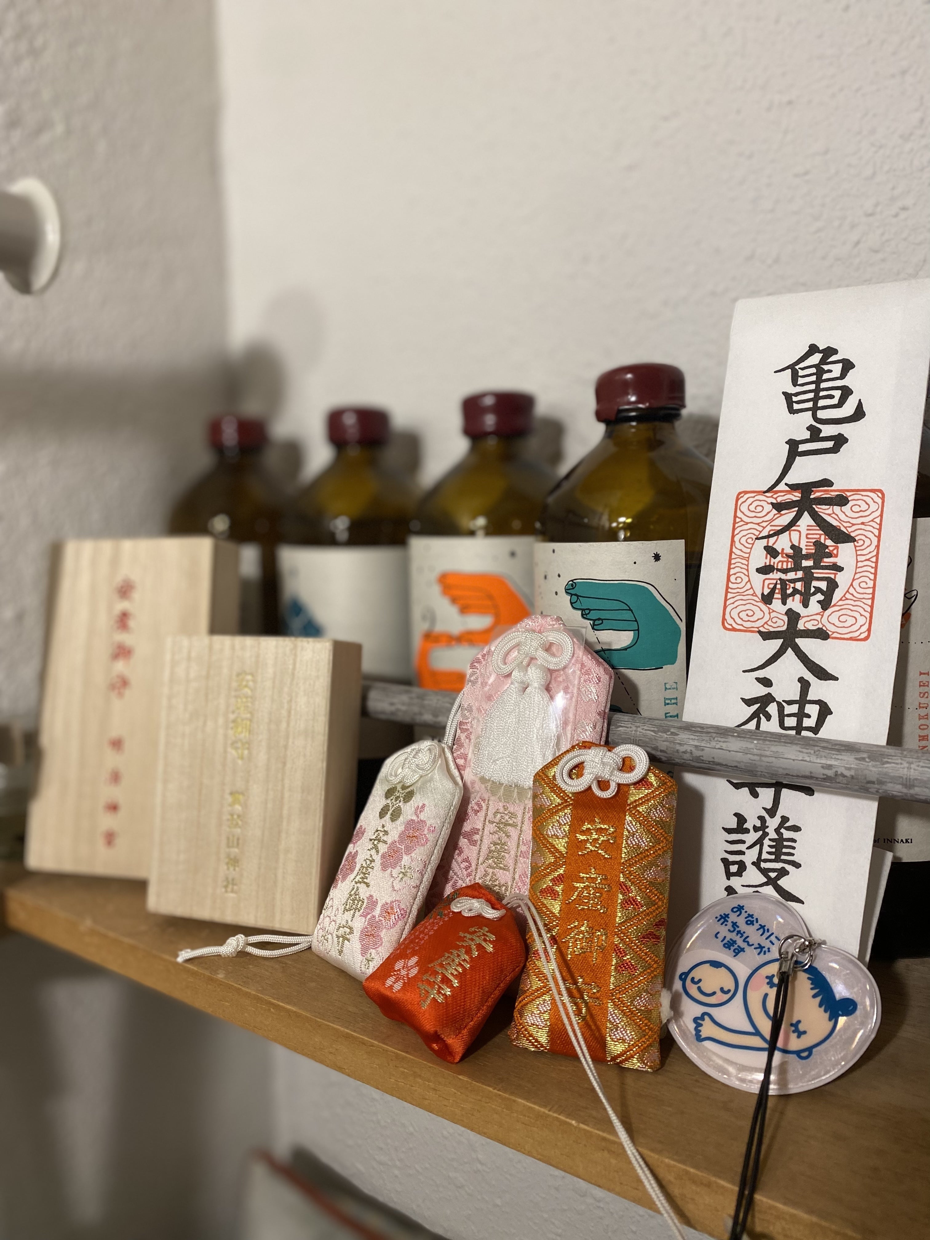 色んな方からいただいた安産御守りと愛用のマタニティマーク。