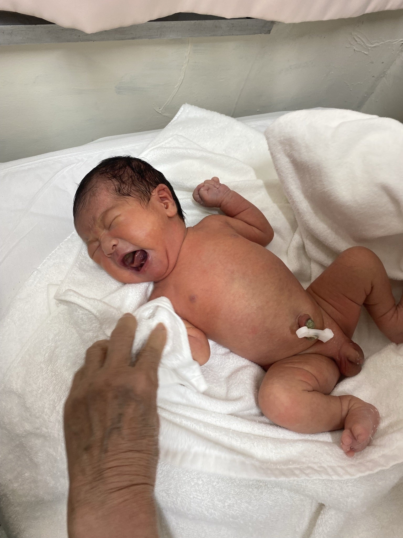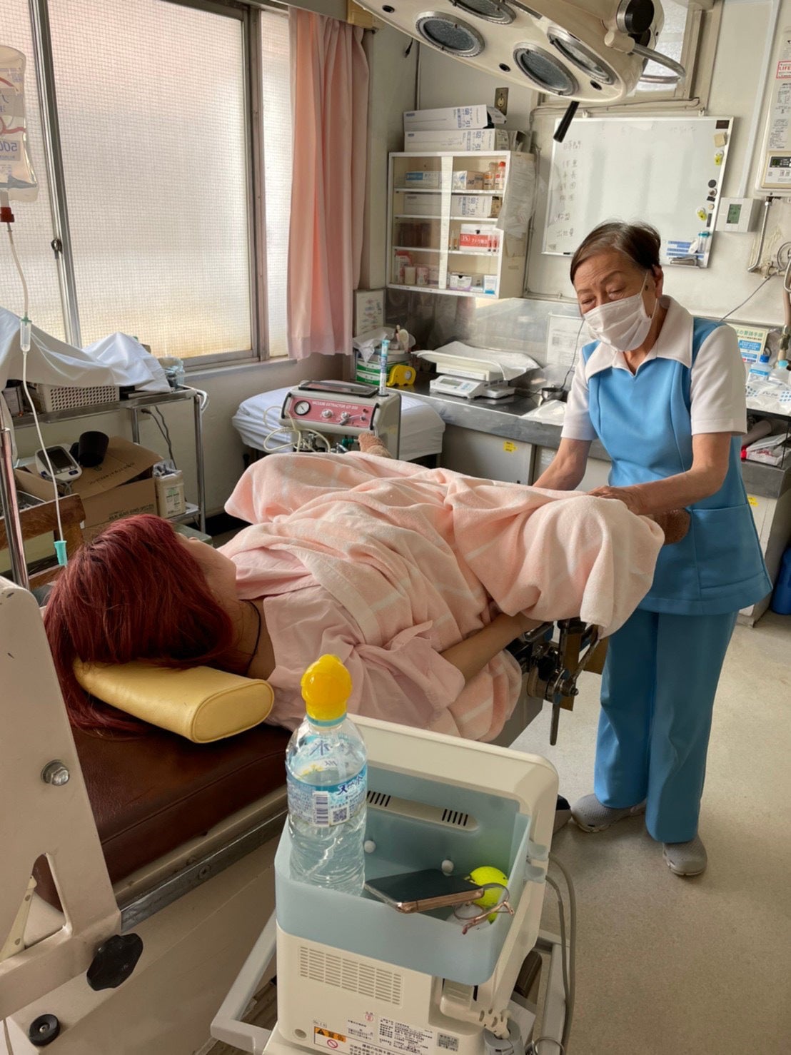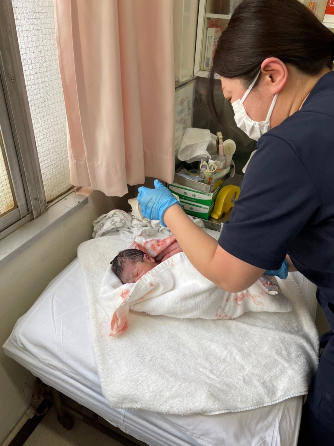 点滴を開始してからは時間の感覚が全く無いのですが、当初は夕方6時〜7時に呼ばれると思いますとパートナーは伝えられて居たのですが、ずっと近くで待機していてくれたのですぐに来てくれました。私の寝る方向が偏っていて、反対に寝方を変えたらすぐに分娩が始まり、そこからはあっという間に産まれました!!