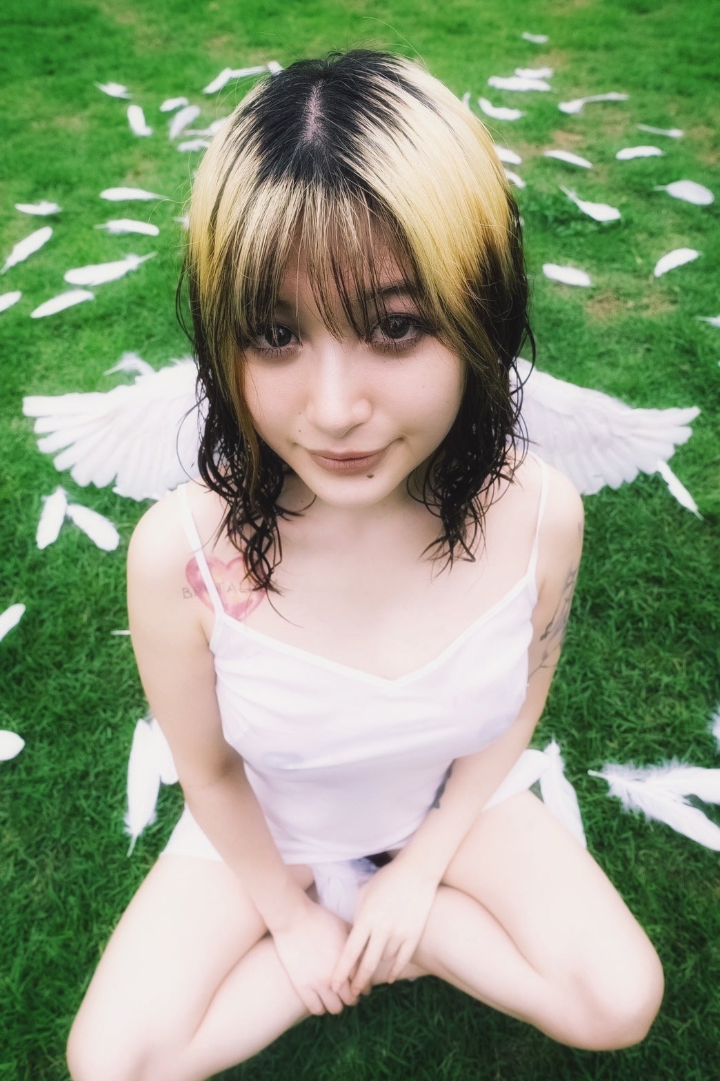 私は今まで、自分の身体を使って、独自の世界観を表現してきました。今日は、その中でも、まだお腹が殆ど出ていなかった頃の作品をご紹介したいと思います!タイトル「迷子の天使」都庁前の公園と、都庁前の道路の分岐ギリギリで撮影したこの作品真夏の湿気で黒いマスカラは滲み、都会の喧騒の中で迷子になっても、天使は誰にも気付かれる事はない。撮影当時の私は妊娠6ヶ月でした。安定期に入り、つわりが無くなり、精神的にも安定してきて、妊娠という状態を楽しめるようになった頃。出産を認めてもらう事、仕事との付き合い方や私の抱えていたメンタルヘルス、そうした様々な問題と向き合い、どうしたら幸せになれるのか、己のプライドや言い訳を全て捨ててぶつかり、親の本当の気持ちや凄さを知った頃でもあります。こうやって当時を振り返ると、しみじみと今が幸せだなと思います。当時は全く余裕がなかったので、幸せだと思える事が幸せだなと、、。キッズに会えるのが、本当に楽しみです。元気に産まれて来てくれれば、それでよしよ。天使君