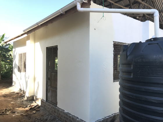 ついにラストスパート、ソーラーパネル付きました! ここの村は電気が通っていないため、電気の確保にはソーラーパネルをつけるしかありません。ちょっとお高いですがしかたなく((+_+))夜や明け方のの作業も絶対必要になるので、、、 電球も長くもつものにしてもらい、4年は交換しなくて大丈夫とのこと。 そして、雨水タンクの追加と、鶏舎のドアの前にベランダも作りました。 こういう作業風景もいつも間にか懐かしくなっていましたね(#^.^#) ここ3日間くらいの雨を見たら、雨期になるとタンク一つでは足りないなと判断し、ひよこ用の部屋と食品庫の建物にも専用の雨水タンクを設置。 事業が始まったら、鶏舎に入る前には長靴を殺菌するのですが、抗菌薬を入れるおけを置く場所の確保、また床に敷くおがくずが泥に落ちてダメになってしまわないようにベランダを一部に作りました。 やっぱりぎりぎりです。(笑) ようやく明日には鶏舎の壁に名前入れます(#^.^#)楽しみにしていてください!