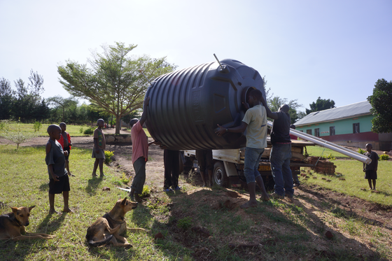 今回購入したレンガは1万個。働いている彼らは、笑い声をウガンダの大自然に響かせながら作業をしていました。