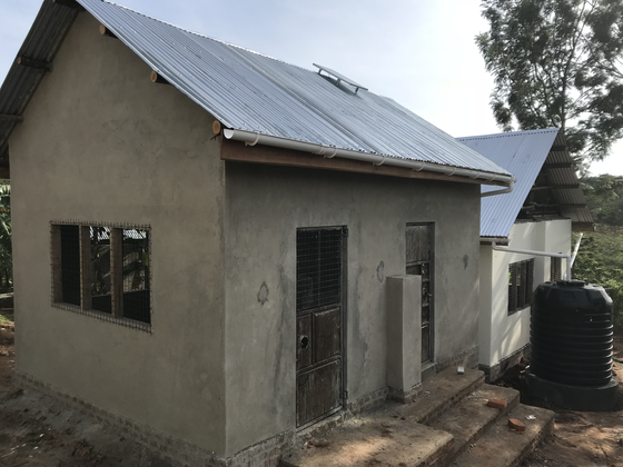 ここ3日間くらいの雨を見たら、雨期になるとタンク一つでは足りないなと判断し、ひよこ用の部屋と食品庫の建物にも専用の雨水タンクを設置。