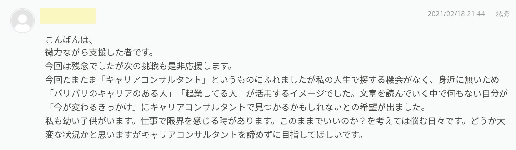 本当に悔しくて。しかし、このメッセージをいただいたおかげで、「『このままでいいのか?』と悩む女性を支える!」という私の決意は更に強くなりました。