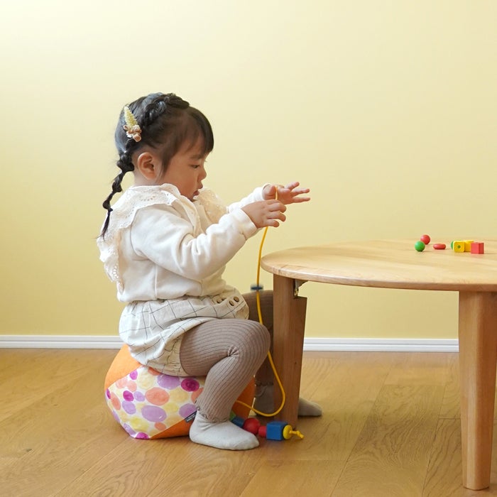 関西でお手玉を意味する“おじゃみ”。お手玉をモチーフにしたかわいい形と、程よい座面の高さは、ベビー椅子や、豆椅子をそろそろ卒業のおこさまが座りやすい設計です。