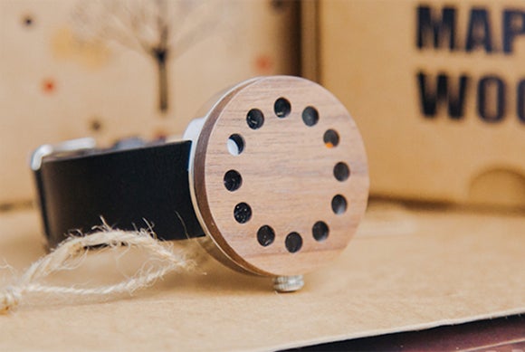 木目が映える円盤には12個の窓が空いているだけ。