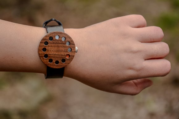 木製時計 INDIOS (インディオス)は、針と文字さえ無くすというシンプルなデザインに行き着きました。