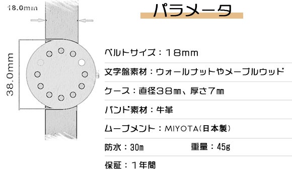 2:文字盤はナチュラルな木製。天然素材のため、1つとして同じものがありません。大切な方へのプレゼントにもぴったり。