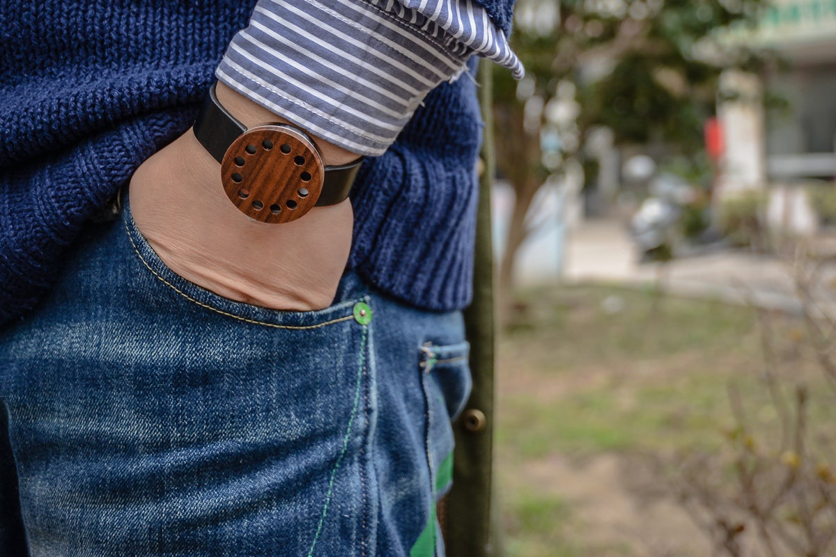 天然素材の木盤は、森の中はもちろん、おしゃれなカフェ街で身に着けていても違和感がありません。
