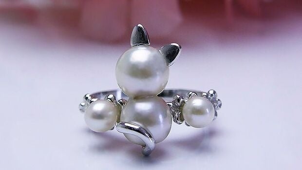 猫と一緒に♪ あこや双子真珠リング SV製 15,000円