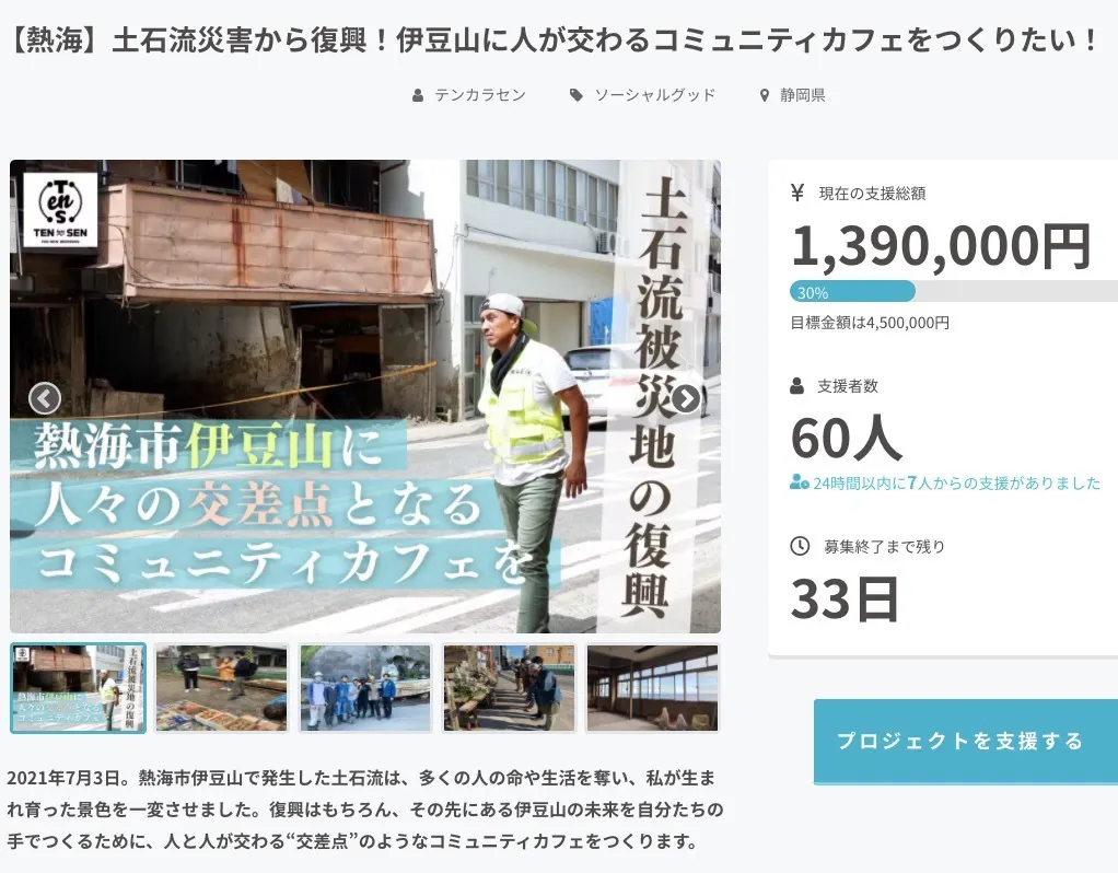 開始からわずか数日で、目標金額の30%を達成することができました!