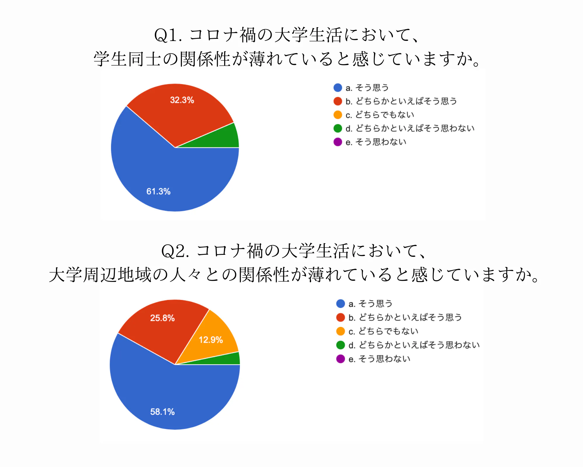 アンケート調査では、9割の学生が「学生同士の関係性」または「大学周辺地域との関係性」が希薄化していると感じていることが明らかに