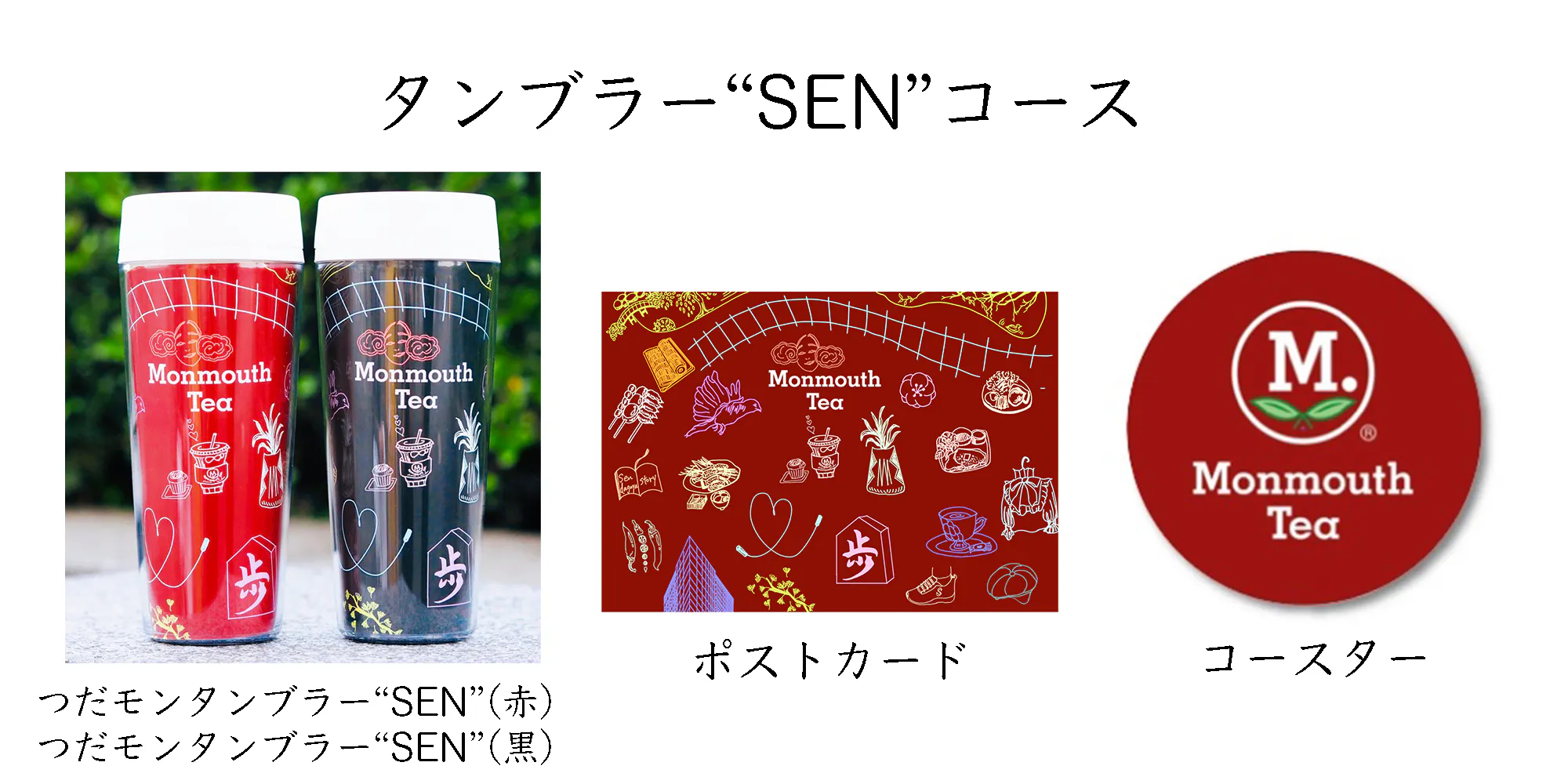 「Monmouth Tea」の紅茶1杯分を、つだモンプロジェクトのオリジナルデザイン「SEN(赤)」のオリジナルパッケージと共にお届けいたします。