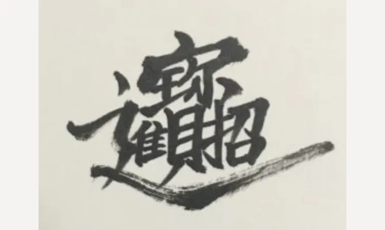 本号のトップ画像は、四字熟語「招財進寳(宝)」を一文字として書いた吉祥文字です。宝船アレンジにしています。
