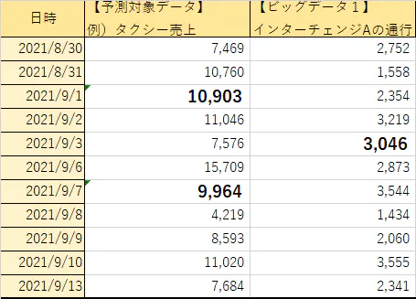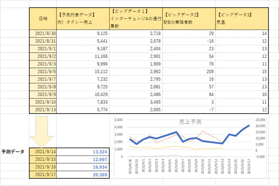 予測するための元データ(「ビッグデータ」)をインプットすると、予測値が算出されます。