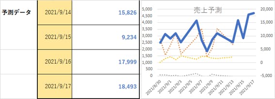 予測するための元データ(「ビッグデータ」)をインプットすると、予測値が算出されます。