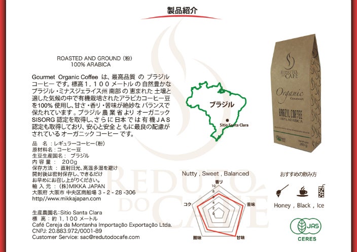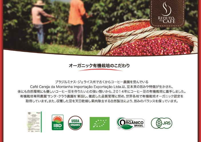 ブラジルでは、SISORG認定を取得したオーガニックコーヒーをこだわりといたしました。