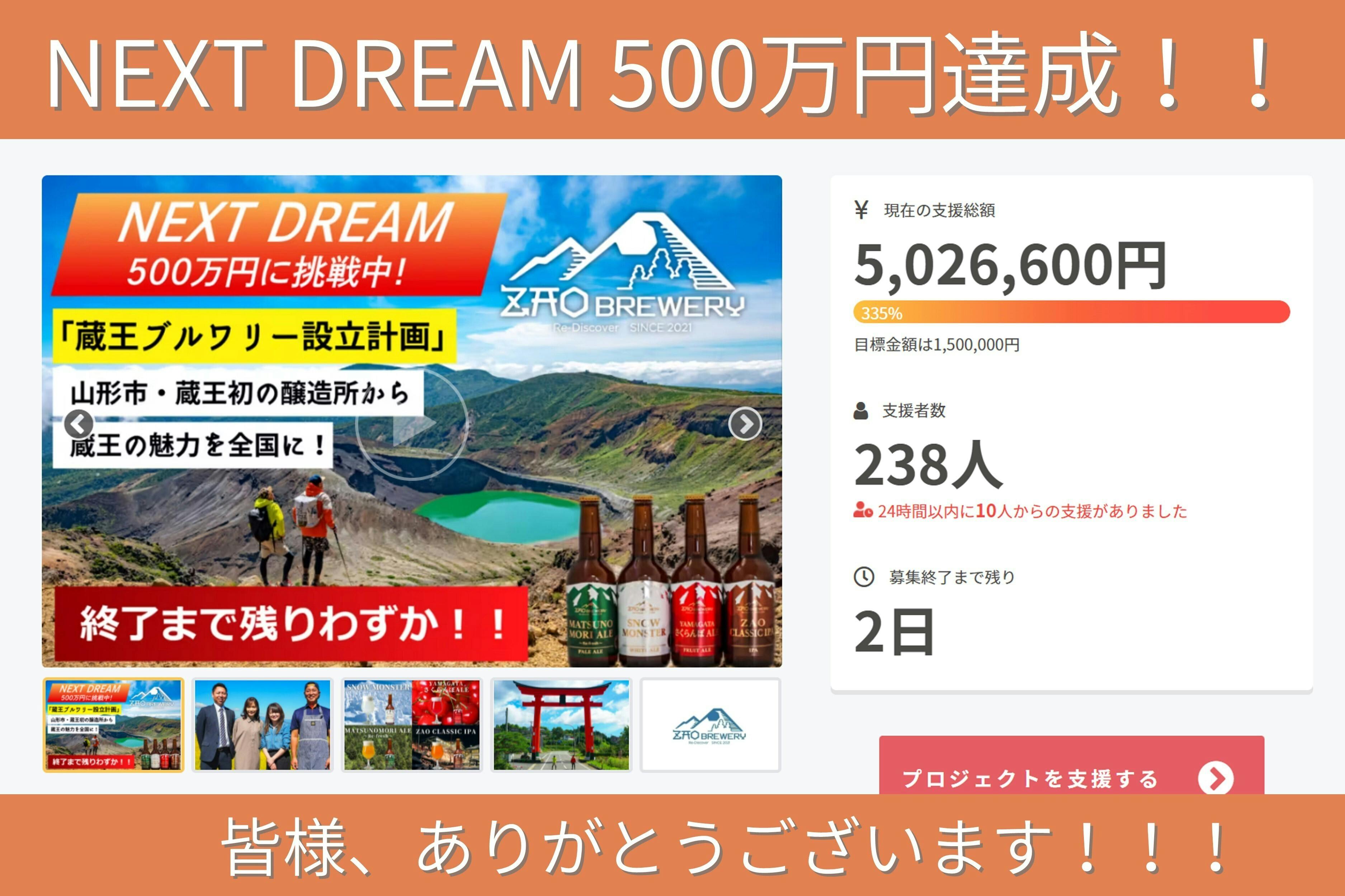 NEXT DREAM 500万円、本日達成致しました!!!!
