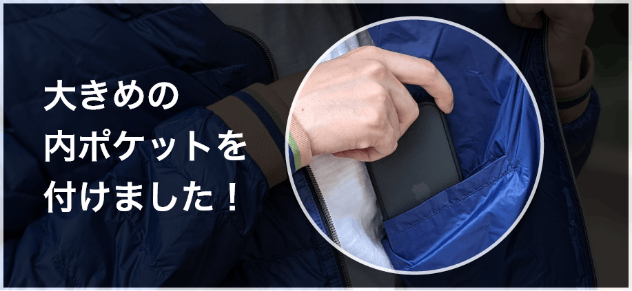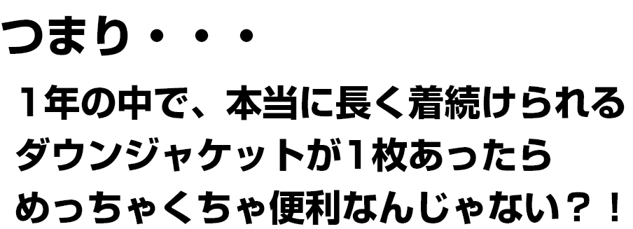 これら4つのテーマを厳守しながらも、「そこ欲しかった!」っていう穴を埋められるようなダウン作りに着手。