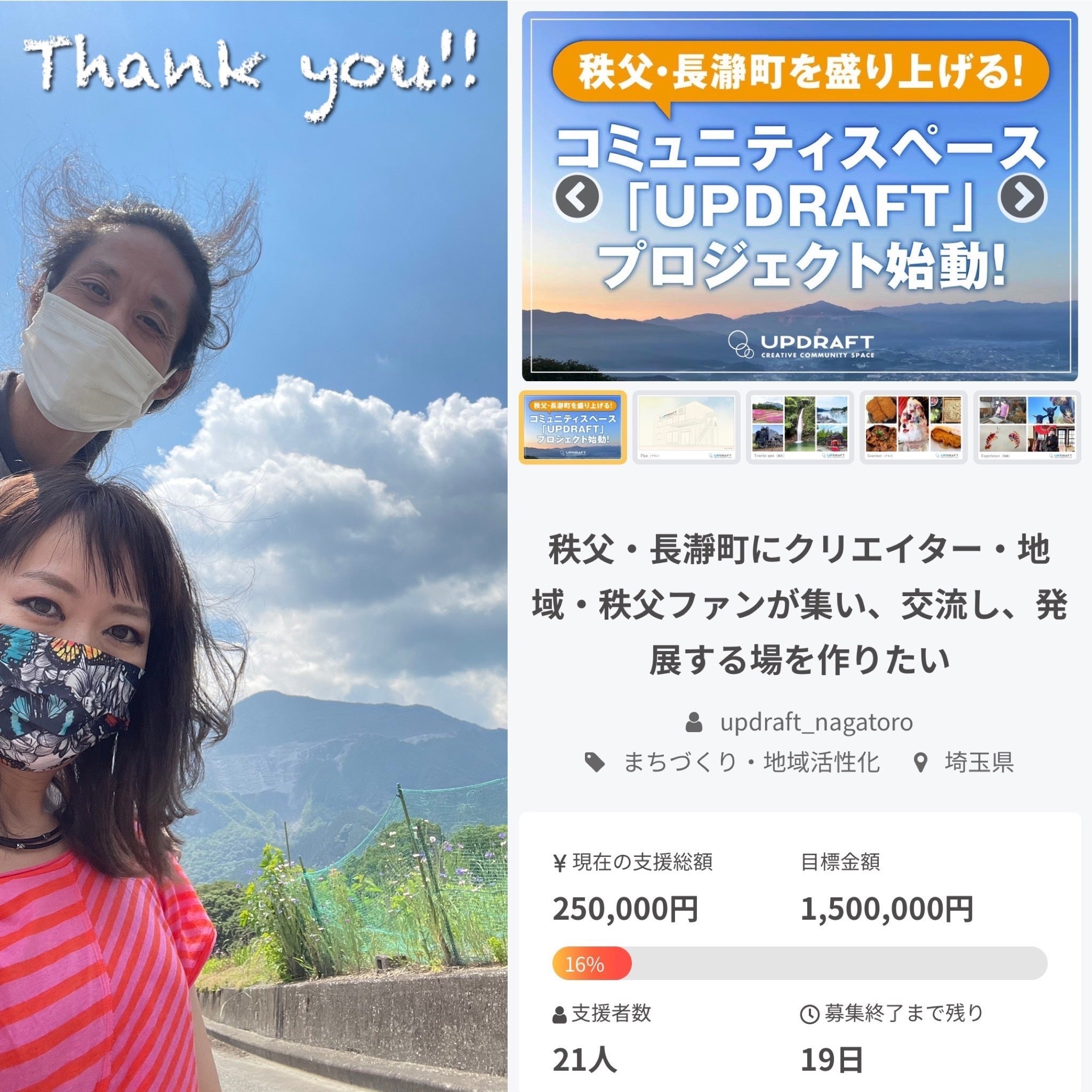 UPDRAFTのヨウジです。11月21日をもちまして、クラウドファウンディング・プロジェクトが終了しました。 最終的に、 48名の方々から、 合計500,000円のご支援をいただきました! ご支援いただきましたみなさまへ心より御礼申し上げます。 ▼クラウドファウンディングに初挑戦してみて思ったこと フリーランスのデザイナー、イラストレーターとして、いただいた仕事に責任を持って取り組むことは、とても大切な事だと心掛けてきました。そして同時に、自分から仕事を作り出す必要性も強く感じていました。今の自分に何が出来るのか?自分のため、自分と似た立場の人のため、地域のためにできる事は何か?それが「UPDRAFT」を立ち上げる動機でした。しかし資金面で大きなハードルがあり、クラウドファンディングに挑戦しました。 残念ながら目標金額に到達する事はできませんでしたが、結果として、挑戦してよかった! と心から思っています。 サクセスできなかったのは、自分の責任であり、今後の良い戒めとなりました。何事も勉強だと思っています。そして何よりも、多くの方々からのあたたかい応援により、たくさんの元気をいただきました。友人知人、お会いしたことのない方々まで、 多くのみなさまに支えられ、励まされ、感謝の思いでいっぱいになった3週間でした。 本当にありがとうございました。 クラウドファンディングは終了しましたが、私達にとってはこれからが本当のスタートです! 「UPDRAFT」が意義の有るスペースとなるよう、努力していきます。秩父方面にお出かけの際は、ぜひ「UPDRAFT」に遊びにきてください!長文になりましたが、最後までお読みいただきありがとうございました。 みなさまのご健康とご多幸を心よりお祈り申し上げ、御礼のご挨拶とさせていただきます。 ありがとうございました。 柏田洋志▼SNSも開始しております。こちらもぜひよろしくお願いいたします!Twitterhttps://twitter.com/UpdraftNagatoroFacebookhttps://www.facebook.com/updraft.nagatoroInstagramhttps://www.instagram.com/updraft.nagatoro