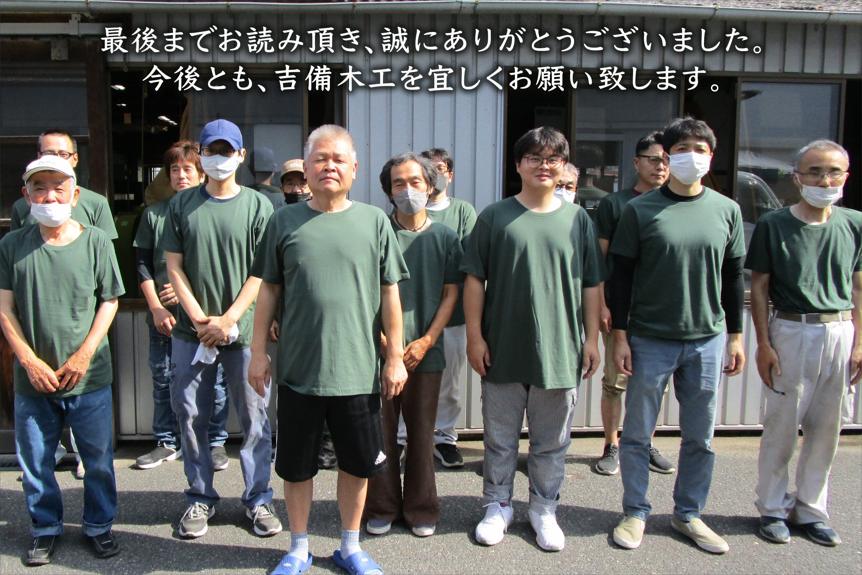 最後までお読み頂き、誠にありがとうございました。今後とも、吉備木工を宜しくお願い致します。