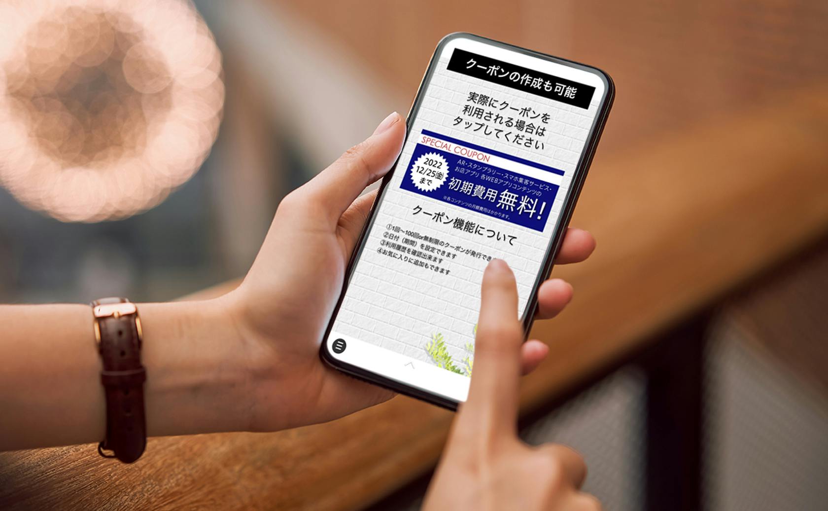 A:こちらでクーポンサイトご用意いたします。クーポンのデザインは選ぶことは出来ませんが、お一人さま1回限りのもぎり機能もお付けすることが可能です。ご相談ください。