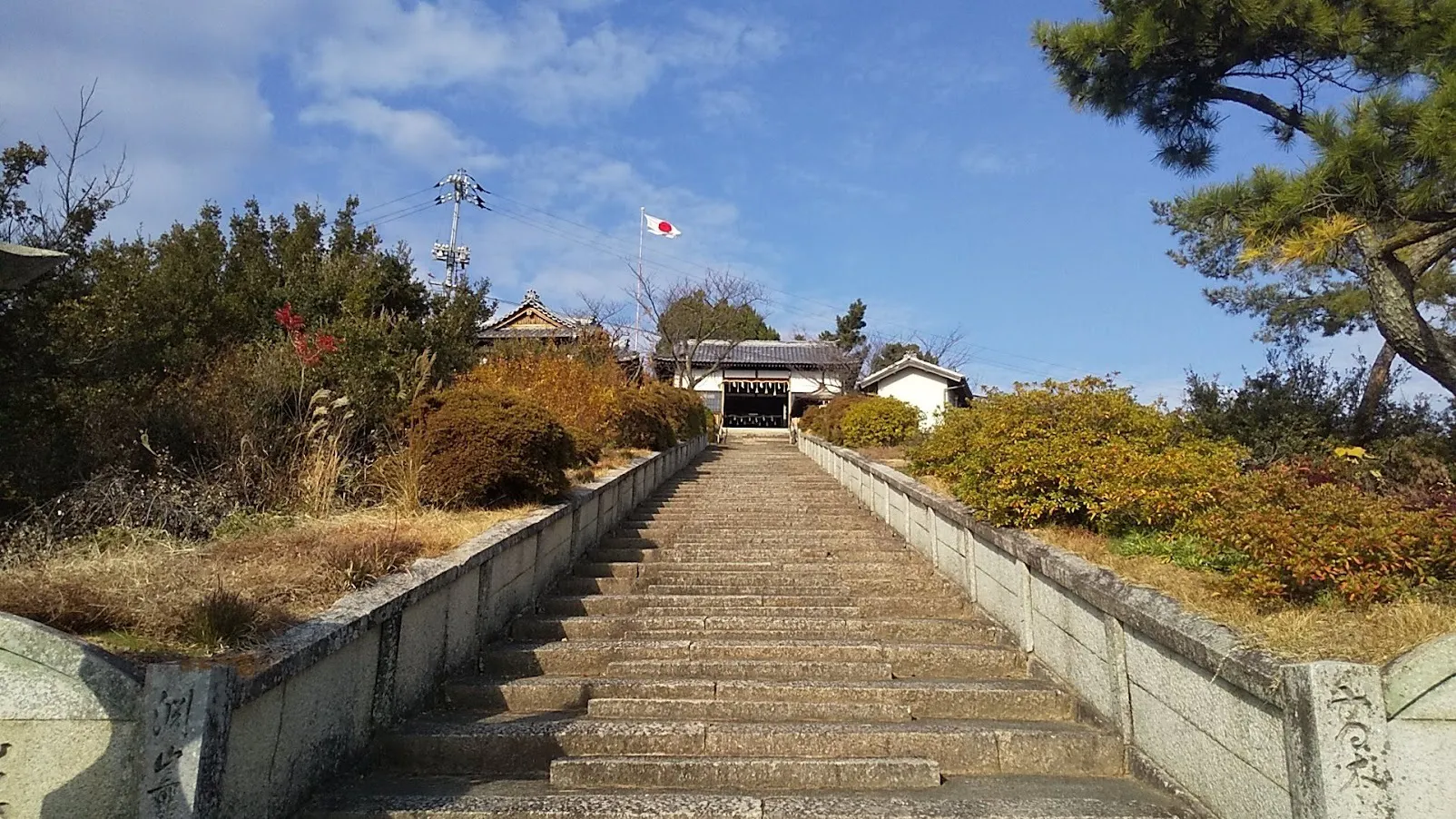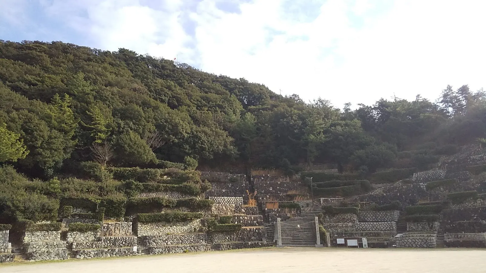 神社のふもとには桟敷(さじき)という秋祭りの時の観覧席が広がっている。