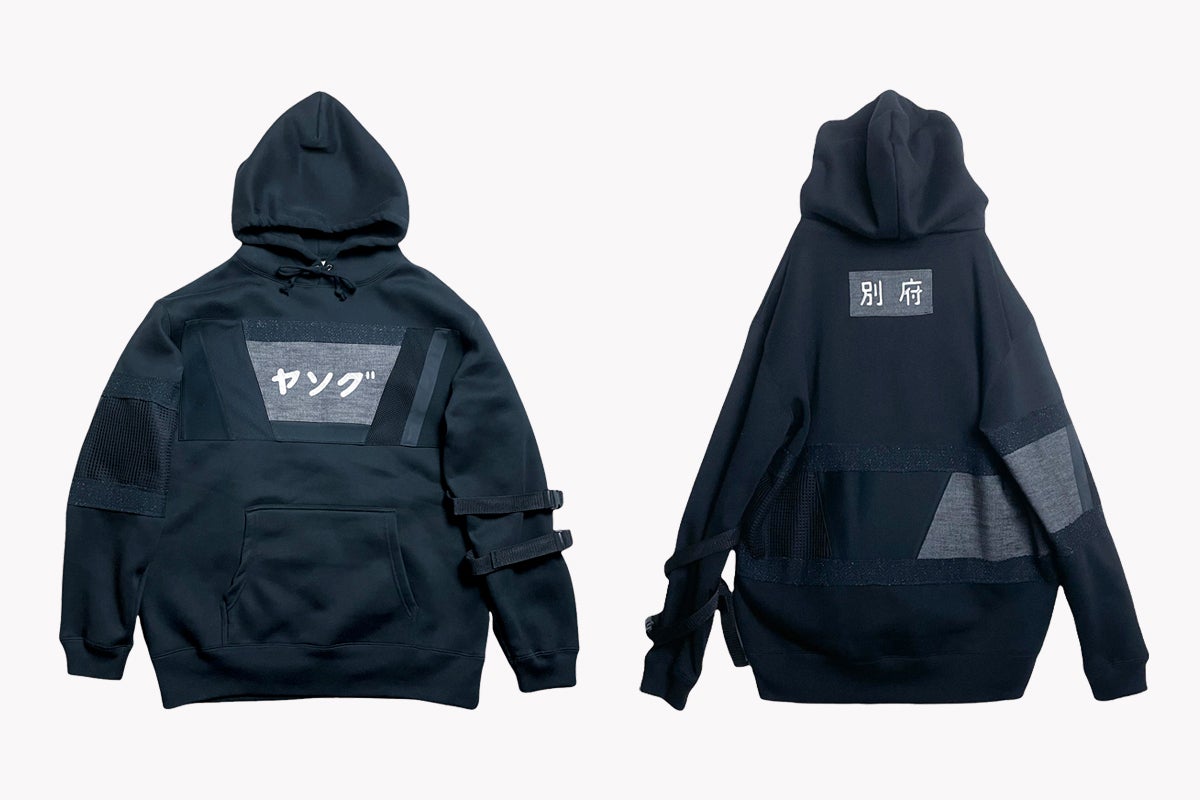 袖には「昔と今」「世界と別府」を繋ぐという意味で2本の差込バックルを装飾しました。限定3枚。