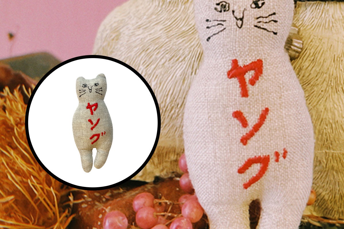 「ヤング」をまとった可愛い猫ちゃん。背面にはマグネットとブローチピンが両方ついているので、鞄にも冷蔵庫にも付けることが可能。限定20個。