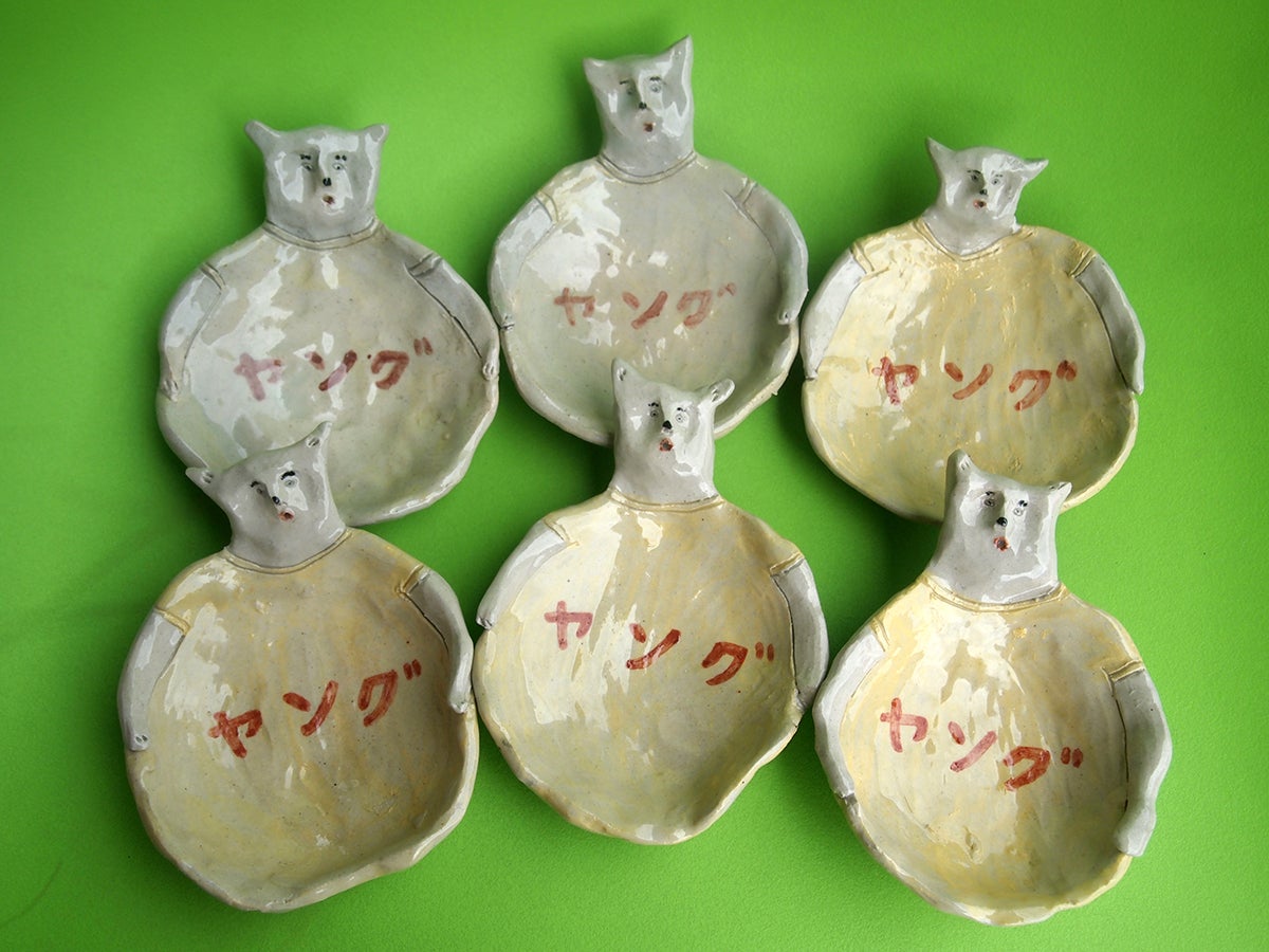 「ヤング」Tシャツを着たオリジナルキャラのお皿です。料理はもちろんのこと、小物入れなどとしてもお使い頂けます。限定23個。