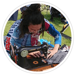 古着のリメイクを主に服をつくる。別府のお湯で糸や布を染め、温泉の個性を可視化する為、日々研究中。