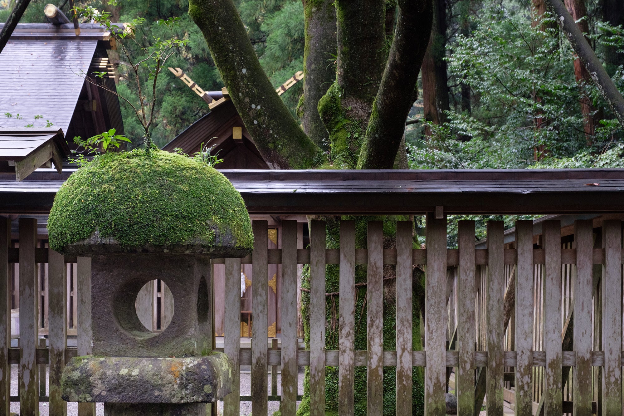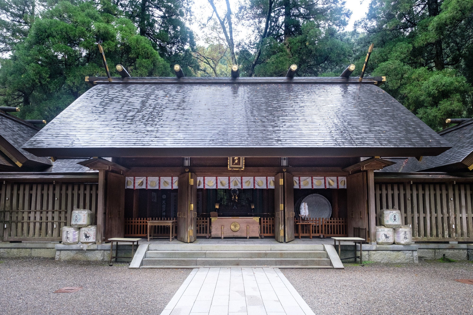 天照大御神様が、天岩戸から出られた後、最初にお住まいになられた場所をお祀りしています。社殿の裏手のご神木の根元に泉が湧き、その奥の森は遊歩道を除き禁足地となっています。西本宮と合わせてお参りされることを、お勧めいたします。