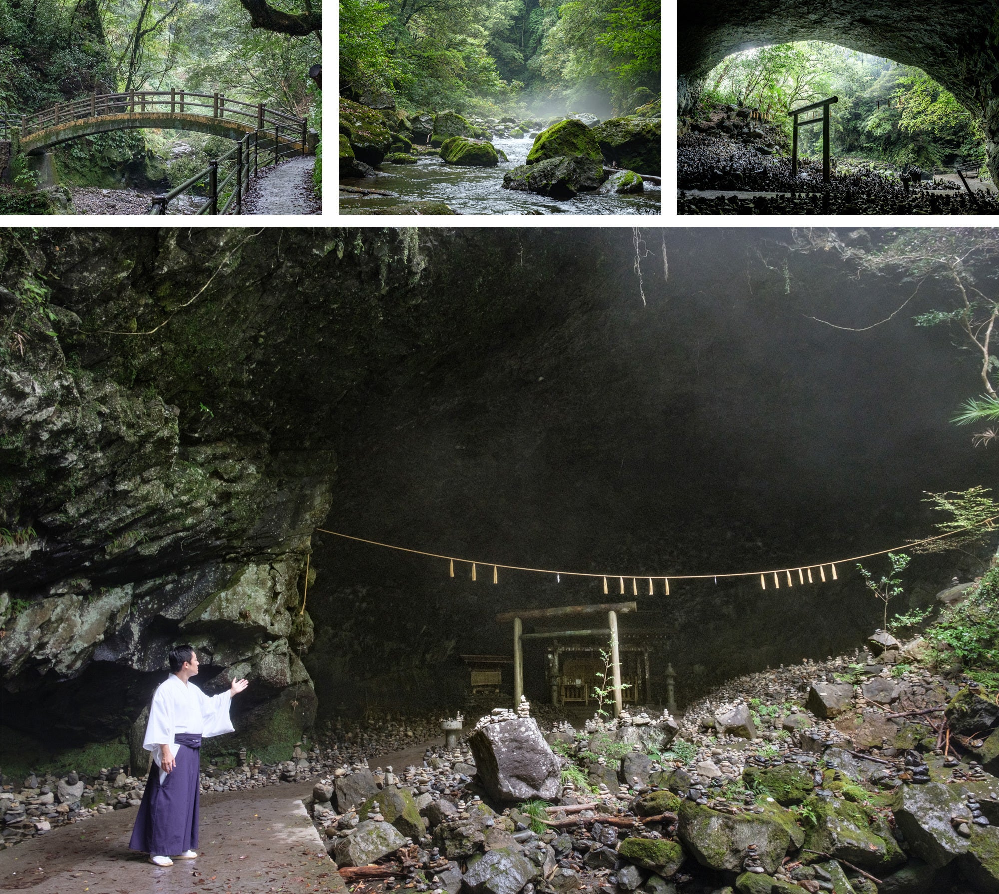 岩戸川沿いの木々を剪定すると、荒々しい岩肌がお目見えしました。ご神体にかかるしめ縄を見たときは、神話に描かれていた姿を再現できて、悲願成就に大変うれしく思いました。またご神域としての存在感や深みも、さらに増したように感じています。昔の人々がなぜこの洞窟を拝み続けてきたのか、時空を超えて人々の心に触れられた気がいたしました。