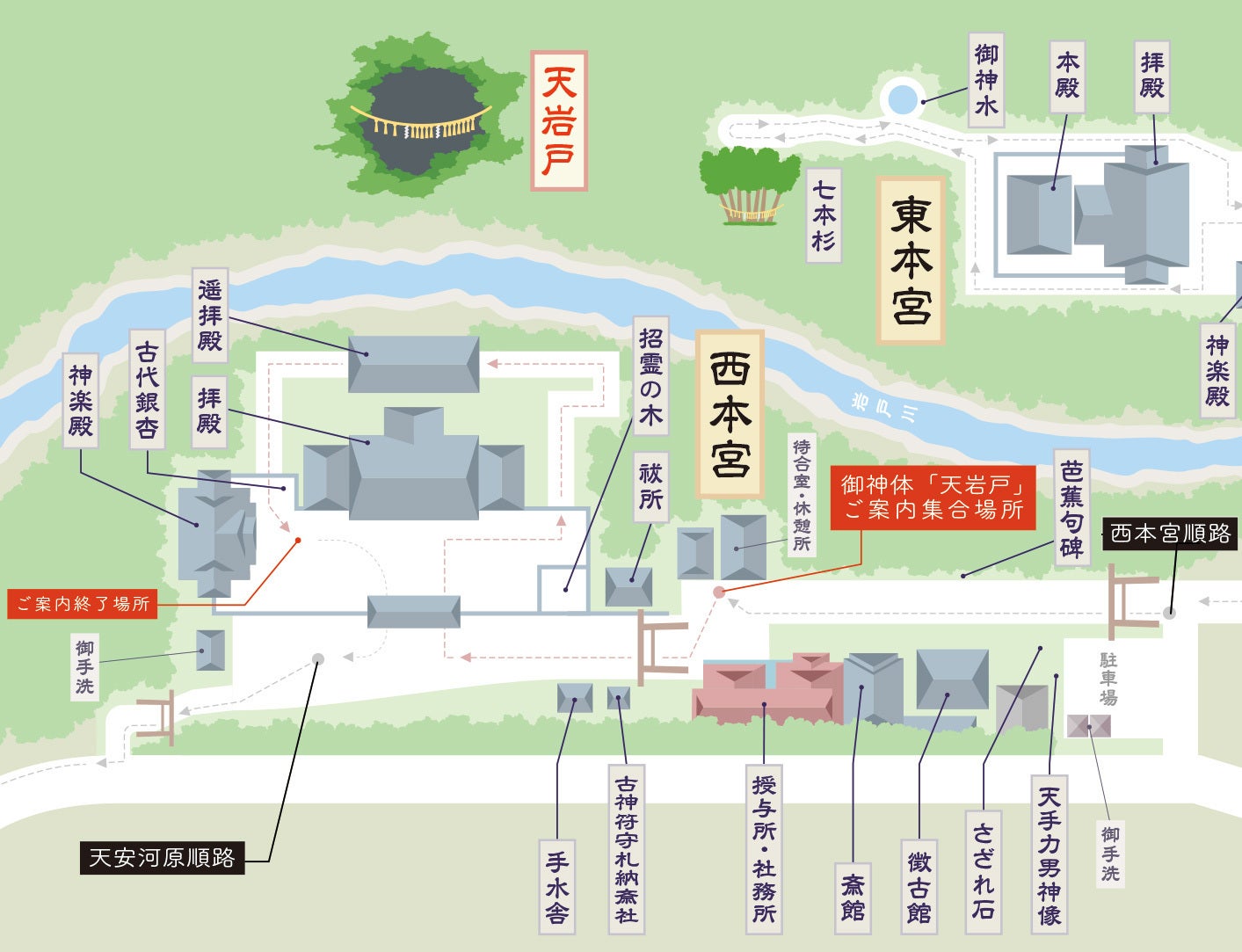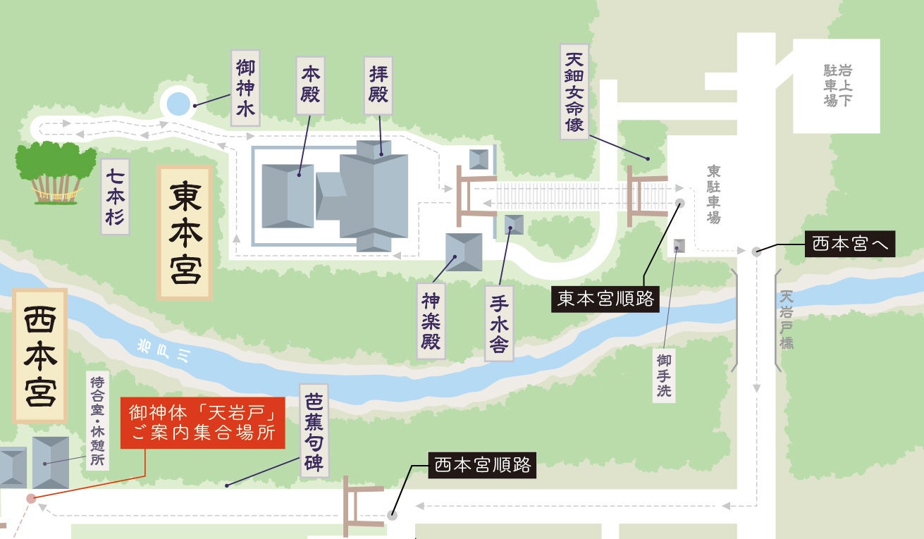 西本郡エリア 案内図◆天岩戸神社 東本宮(西本宮から徒歩5分)