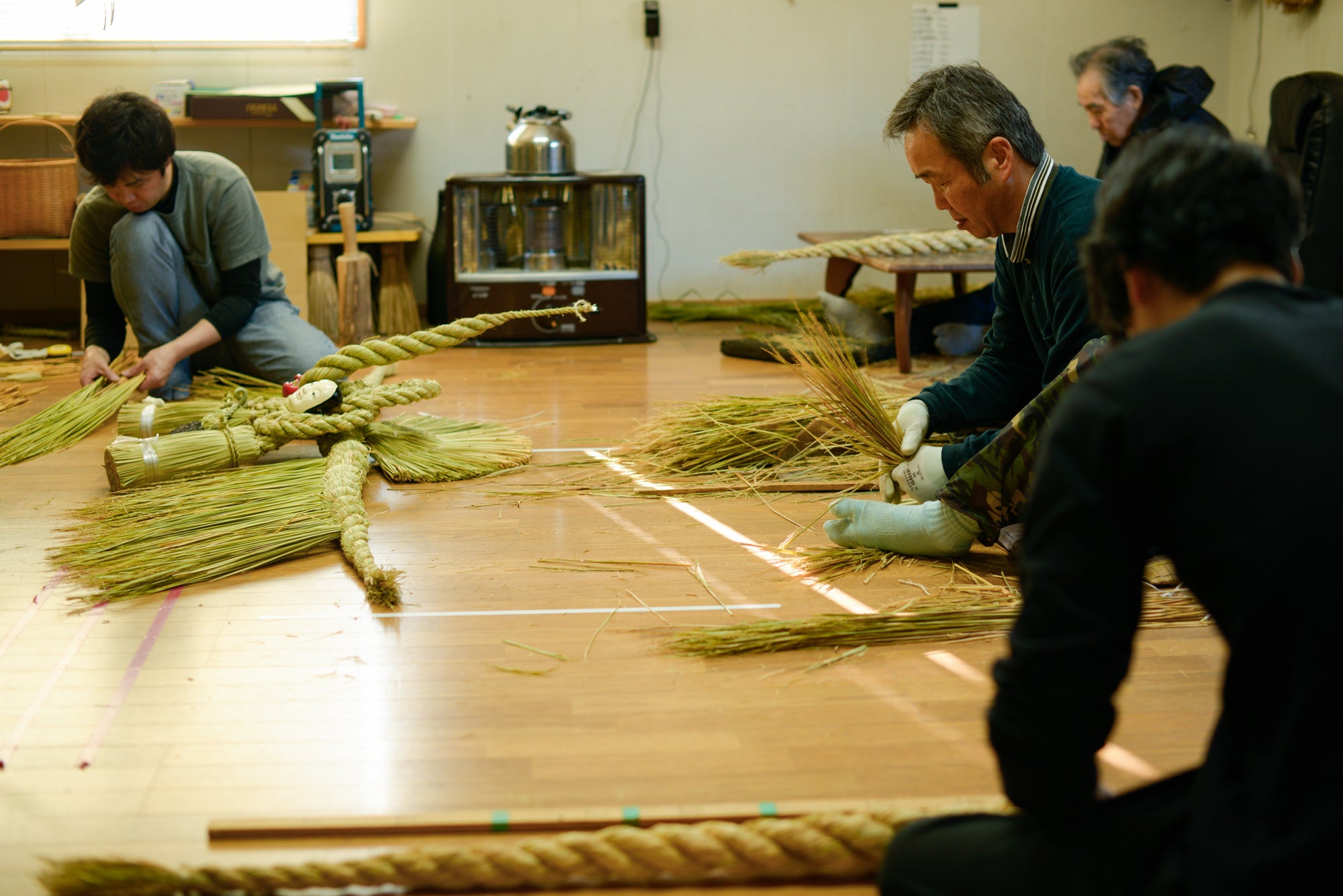 伝統のしめ縄作りの風景 提供:わら細工たくぼ