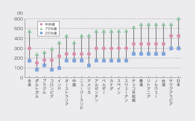 日本人の座位時間が20か国の中で一番長く、日本人には座りすぎのリスクが大きいと考えられます。※1