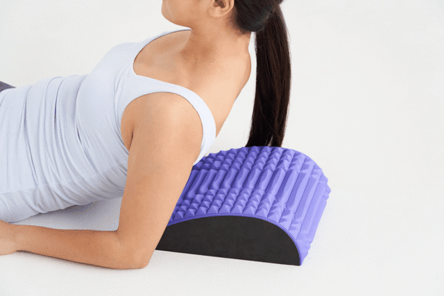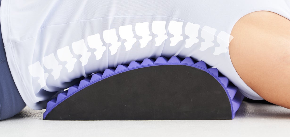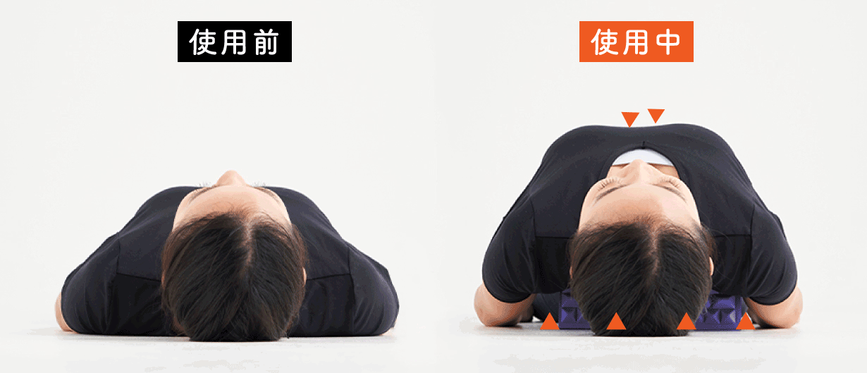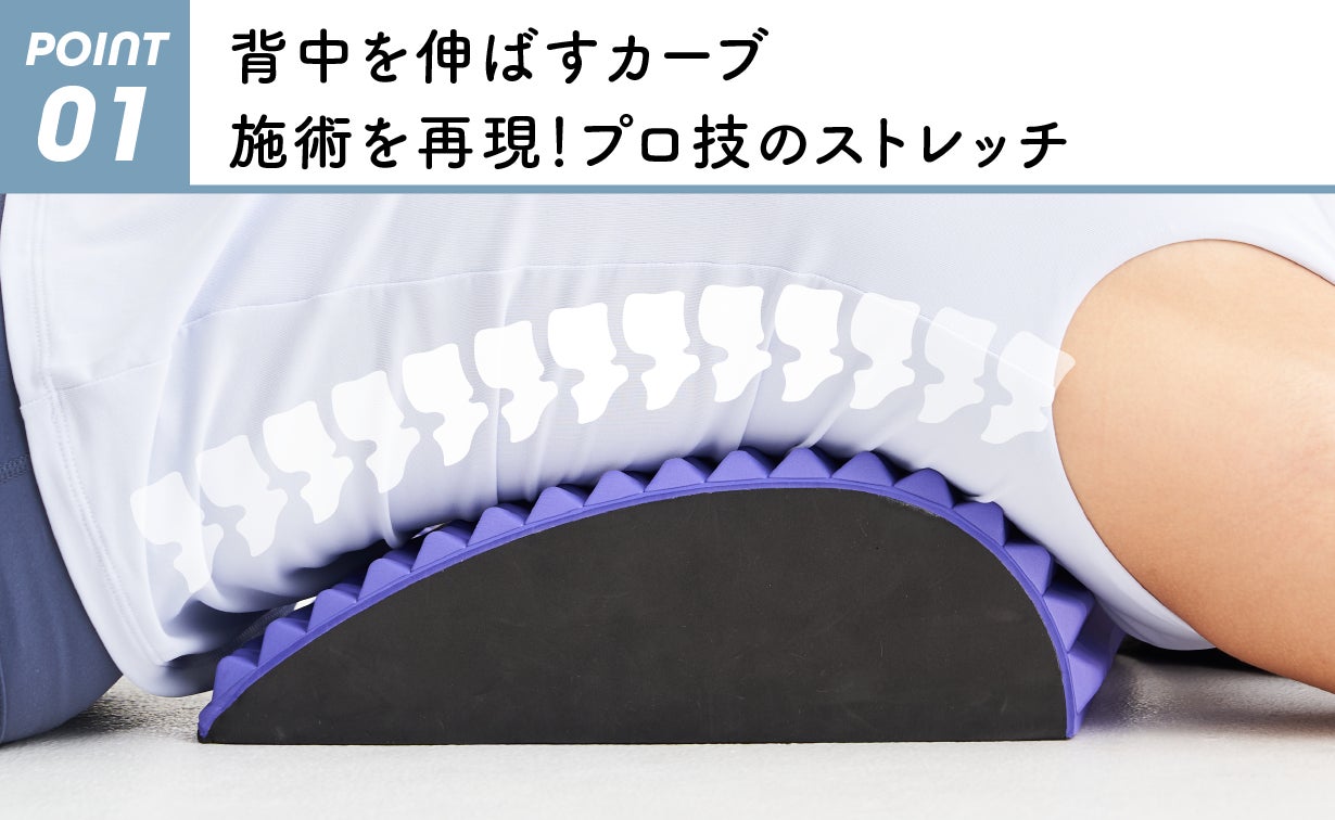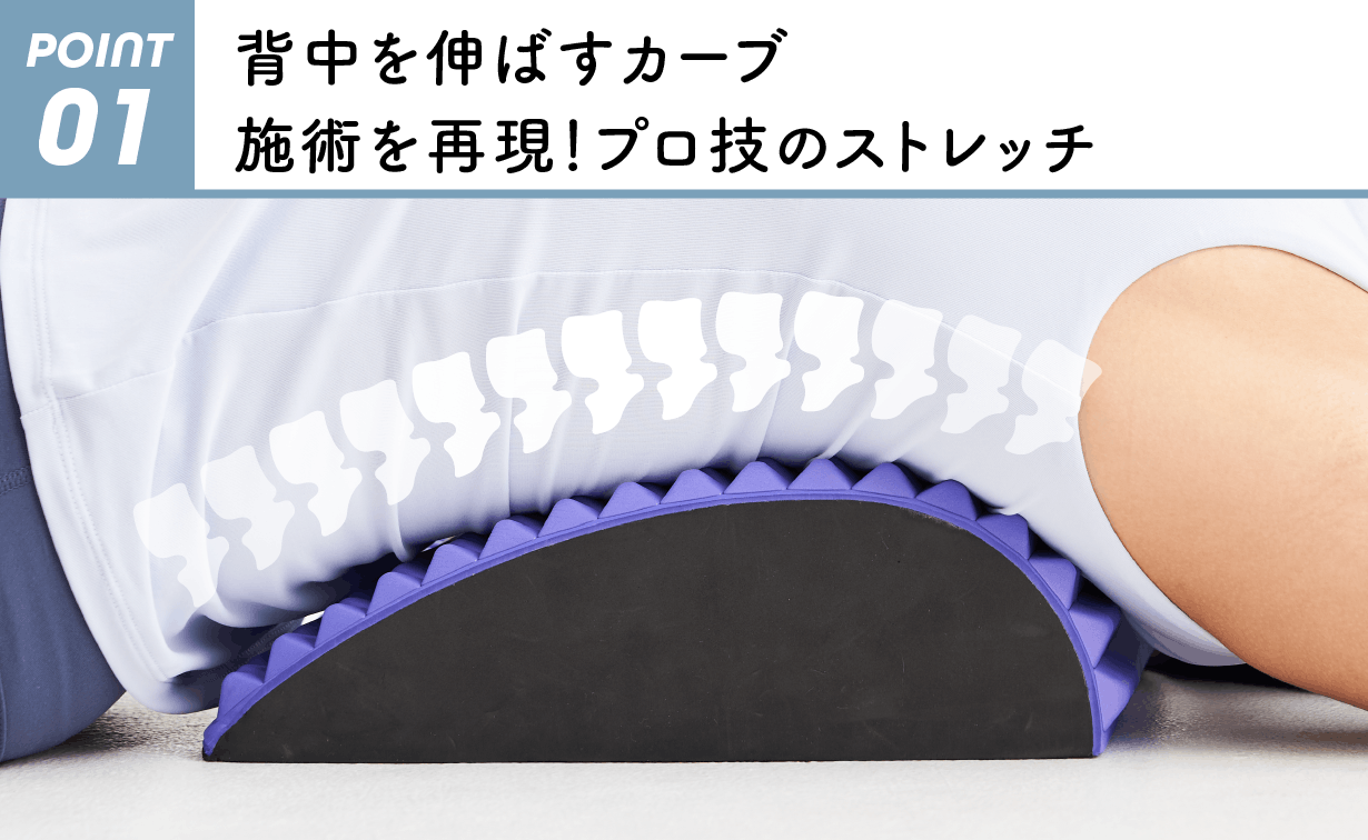 丸くなった背中をぐーっと伸ばし、胸を広げた状態で背中を心地よく刺激。