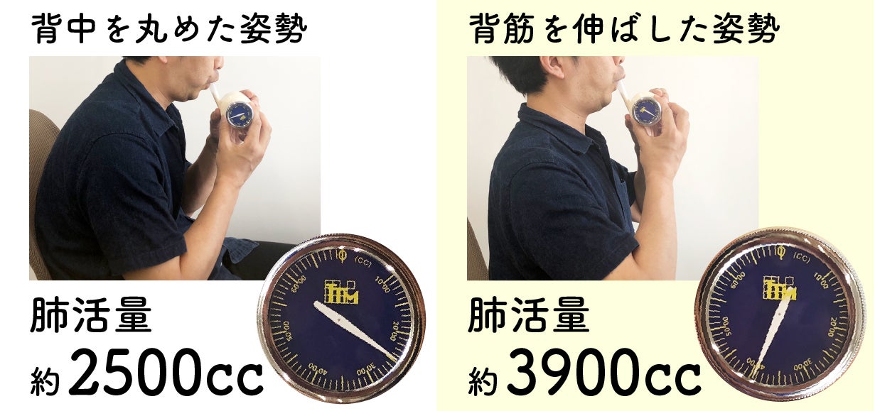 姿勢を変えるだけで、肺活量に大きな変化が見られます。