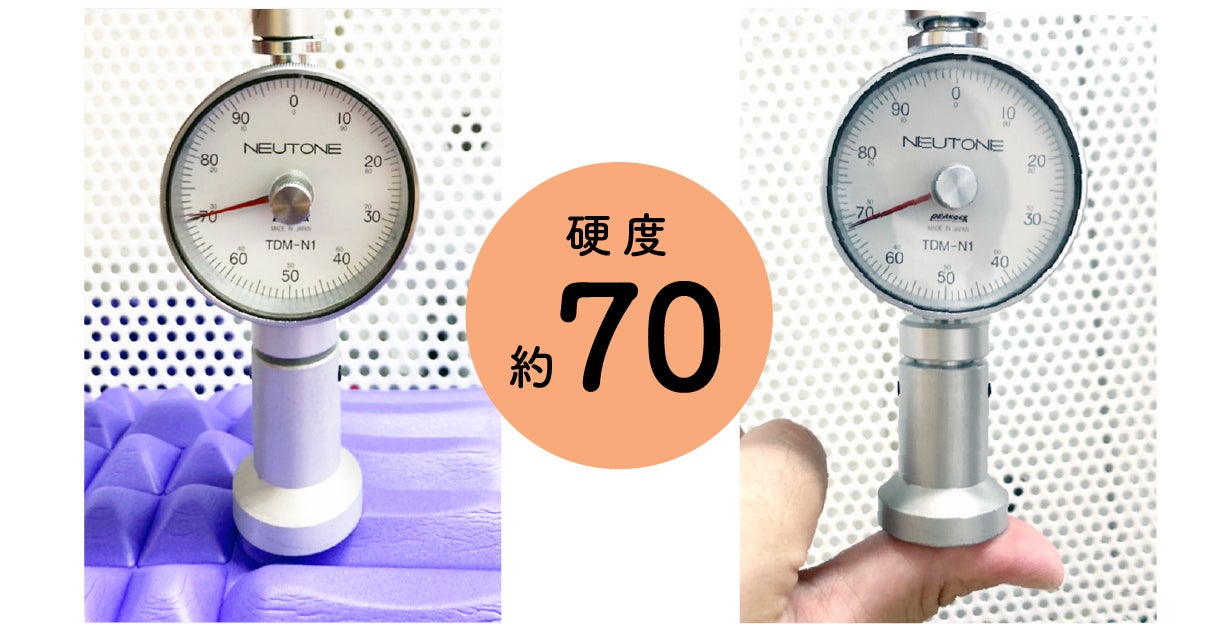筋肉の硬さを測る筋硬度計を使い、「リセットドーム」の使用前と、3分間使用した後の筋肉の硬度を計測。