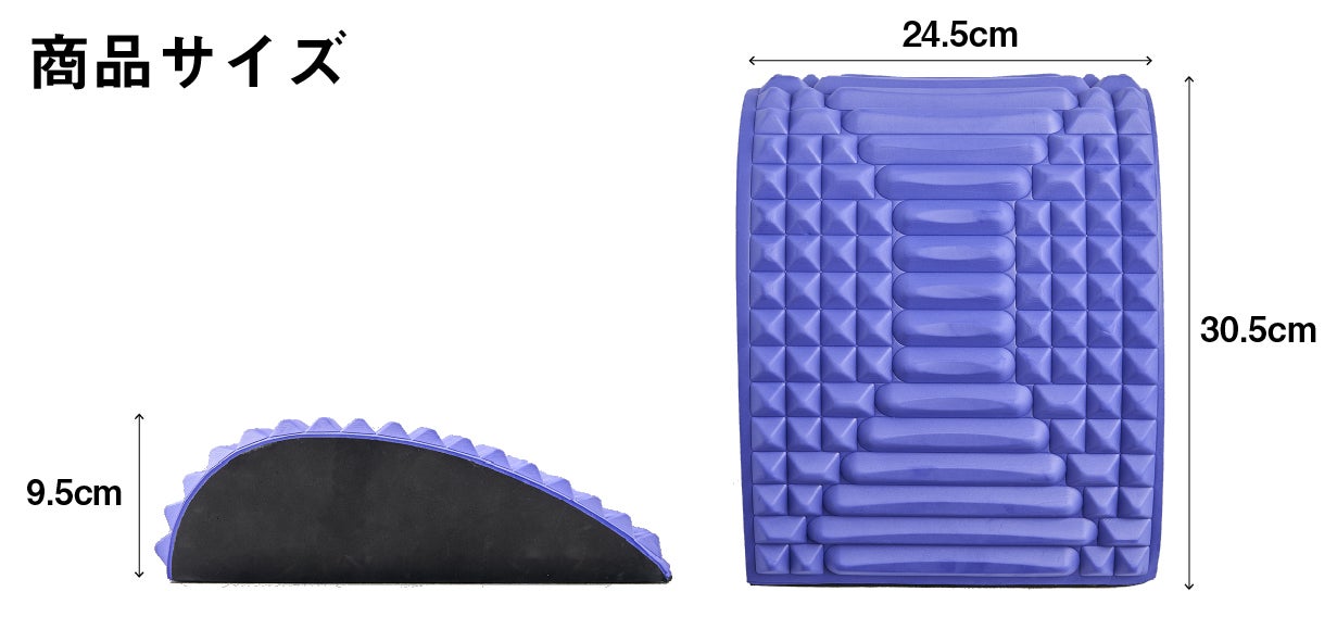 背中、腰の幅に合うサイズで、寝転ぶだけで気になる部分の筋肉をほぐします。