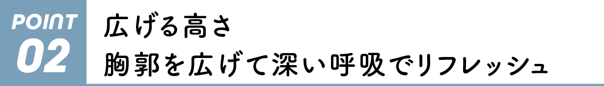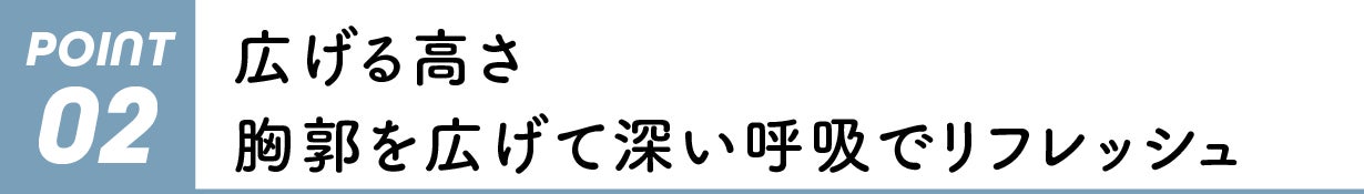 胸を広げて、猫背や巻き肩から解放するストレッチ。狭まっていた胸郭が広がり、自然と呼吸が深くなります。