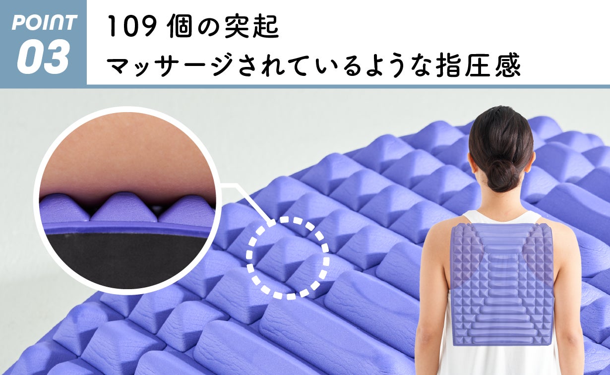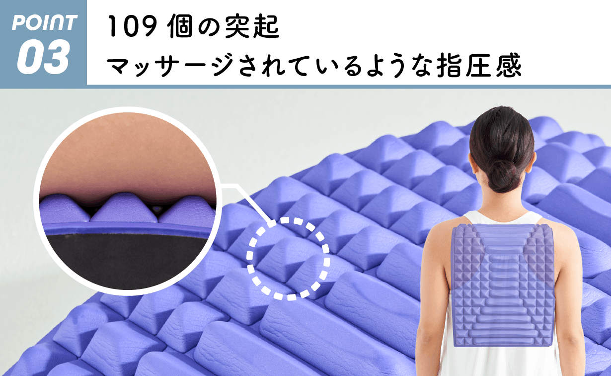 「リセットドーム」には、109個の押圧突起が並んでいます。自分の体重(自重)がかかることで、ほどよく押圧。