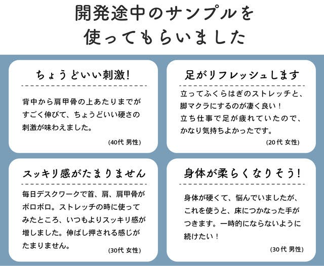 また、本体の硬度は施術者の指の硬度をもとに設計しました。