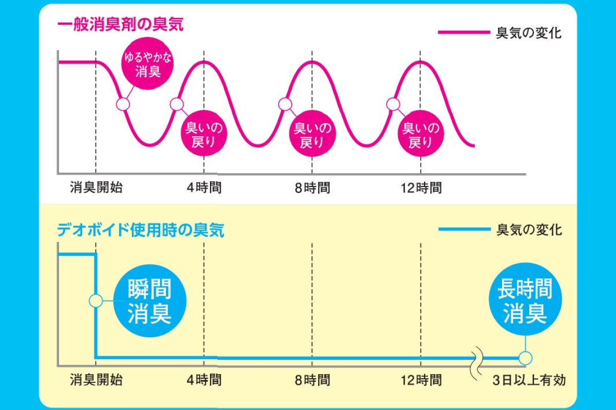 そんな臭いを素早く消し去り、なおかつ臭い戻りも防ぐ消臭剤「デオボイド」。