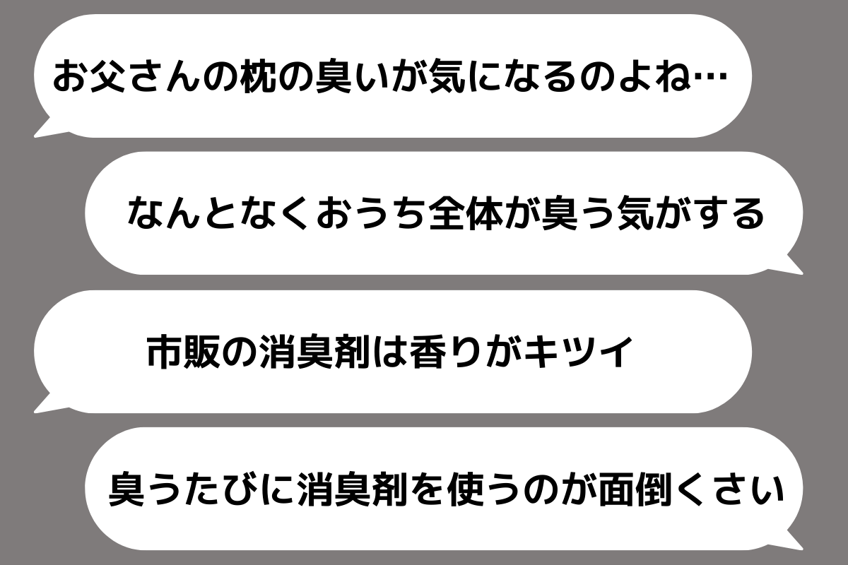 加齢臭や体臭で、枕や靴についた臭いが取れなくて困っていませんか?