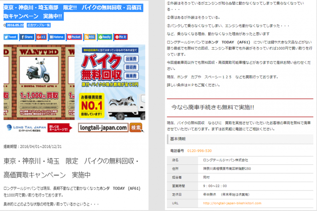 ※主な補足情報は広告画像の掲載・詳細内容の追加、メールアドレス、URL、電話番号などになります。